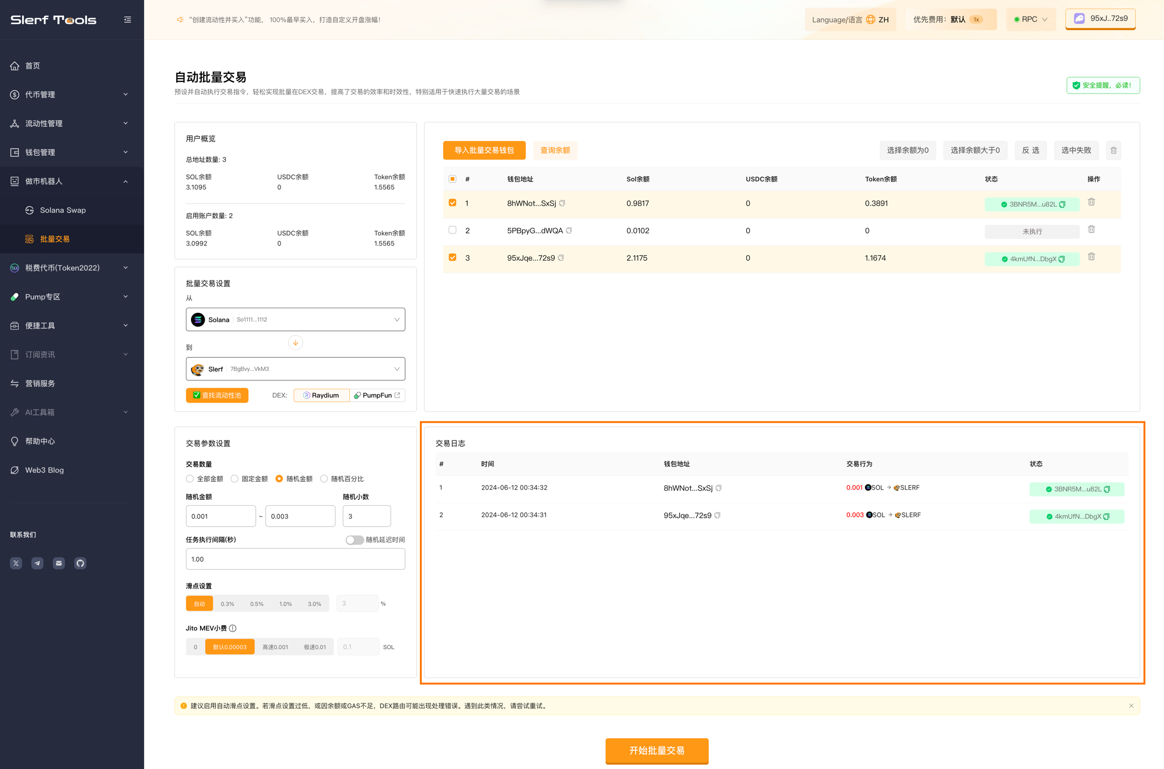Solana Bulk Trading: https://slerf.tools/en-us/swap/solana