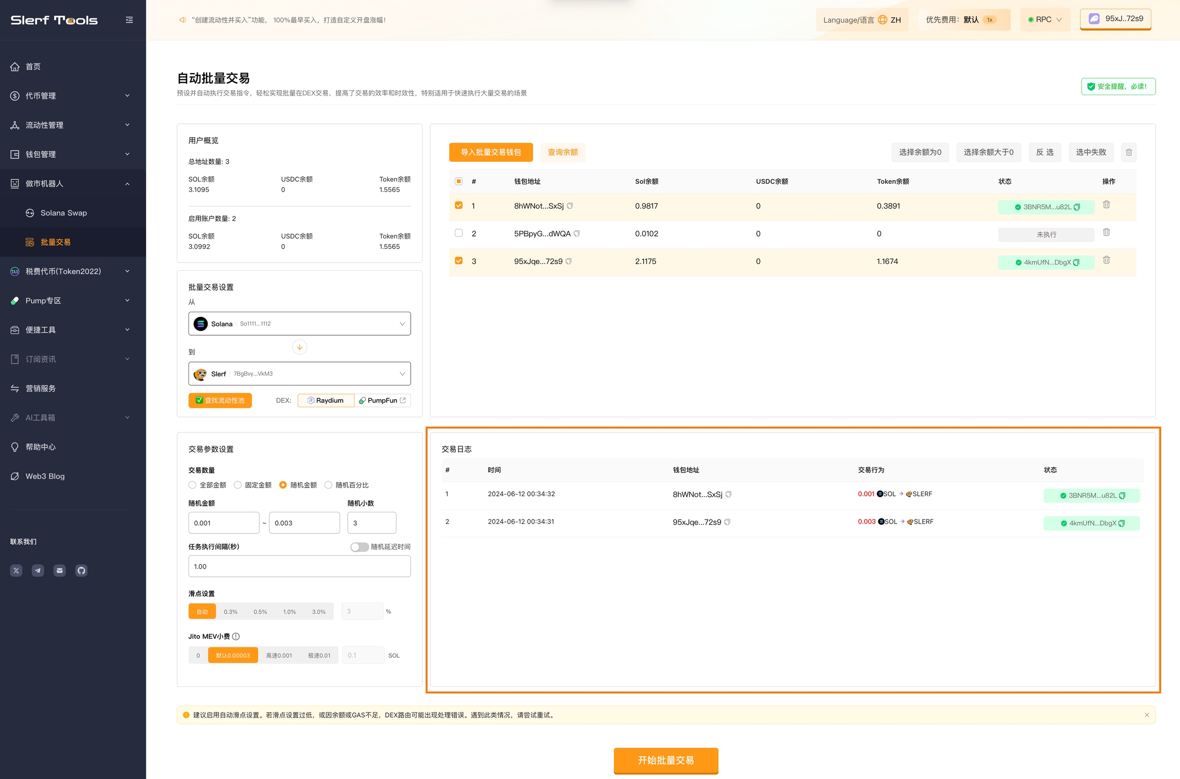 Use the Solana bulk trading tool to easily manage multiple accounts, efficiently execute bulk trades, reduce transaction costs and time, and optimize fund utilization efficiency.