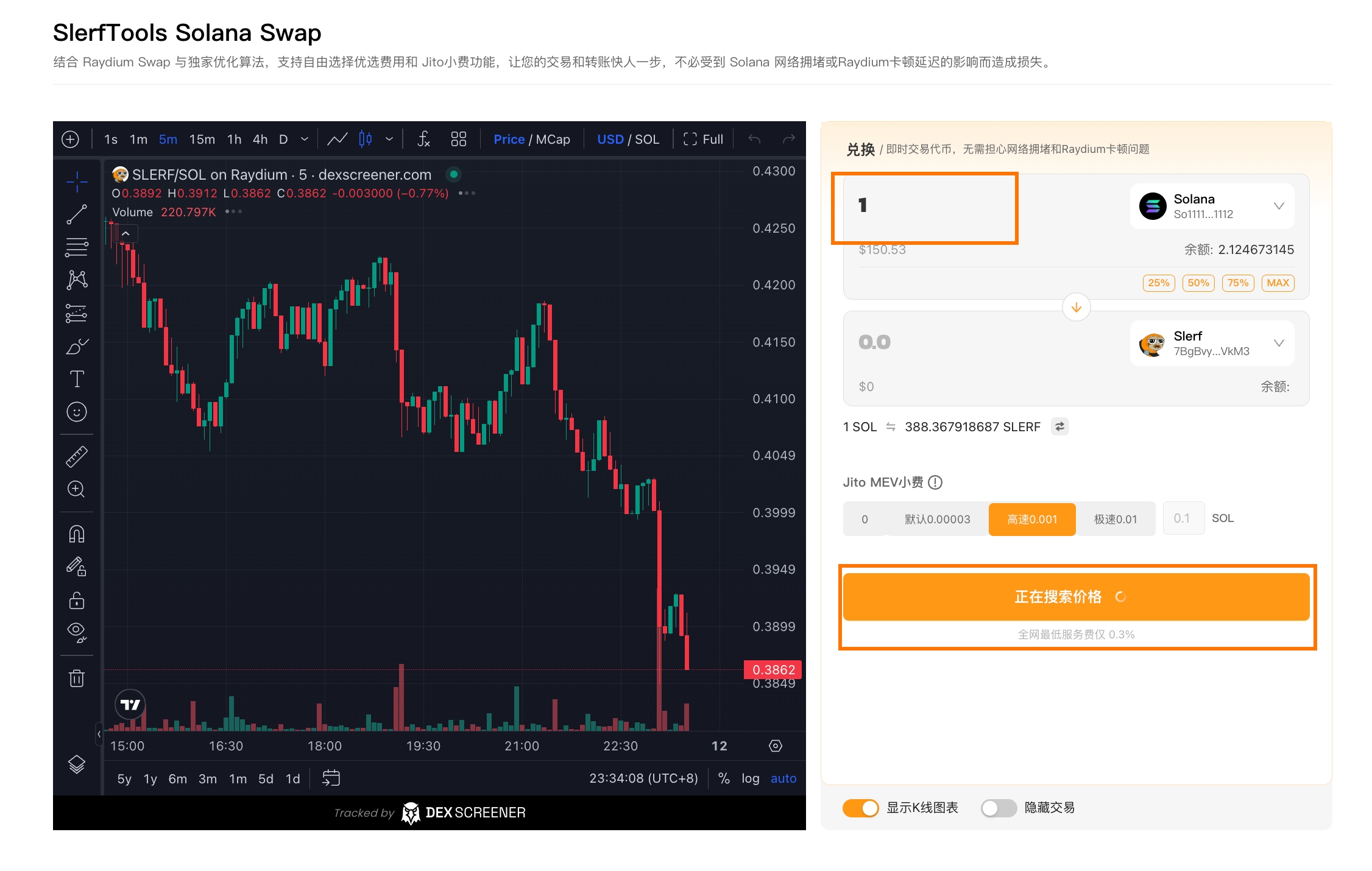 Make your transactions and transfers faster and more secure, avoiding Solana network congestion and Raydium delays. Combining Raydium Swap with exclusive optimization algorithms, it supports optimized fees and Jito tips.