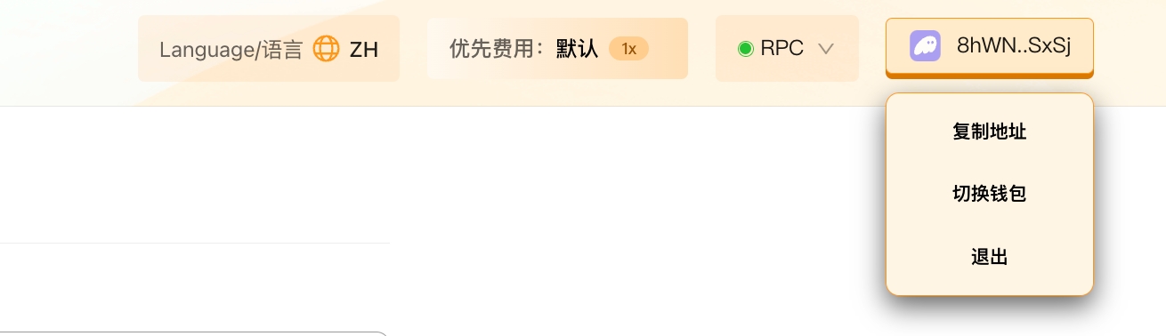 После подключения вы увидите адрес вашего кошелька, отображаемый в правом верхнем углу экрана.
