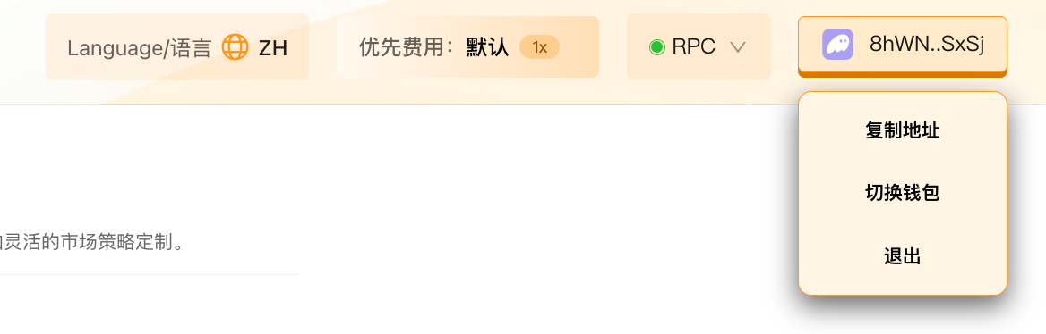 Нажмите кнопку 【Выбрать кошелек】 в правом верхнем углу, в появившемся окне выберите используемый кошелек, на котором должно быть не менее 0.15 SOL для оплаты: