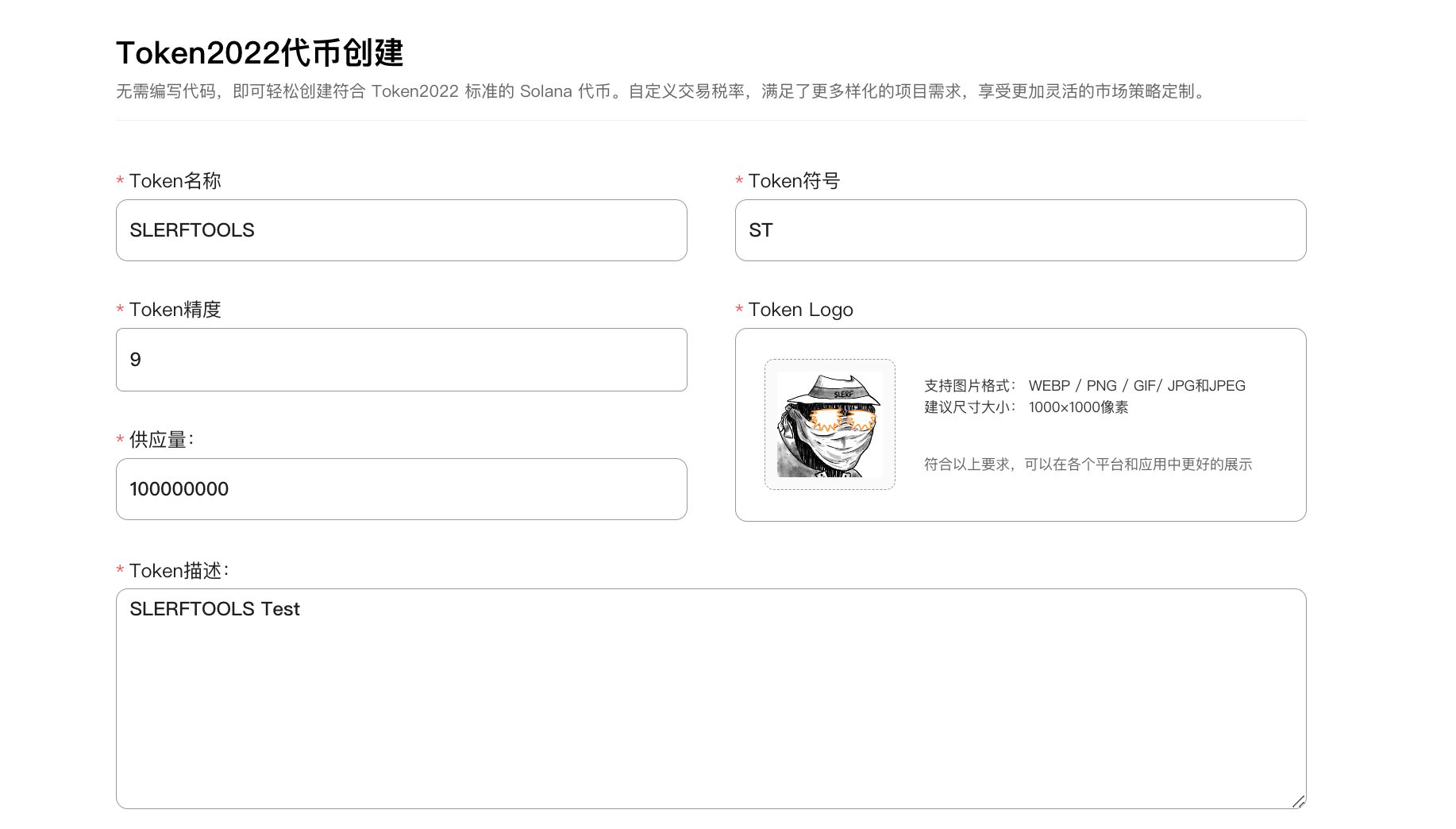 2. Заполните информацию о токене и загрузите логотип