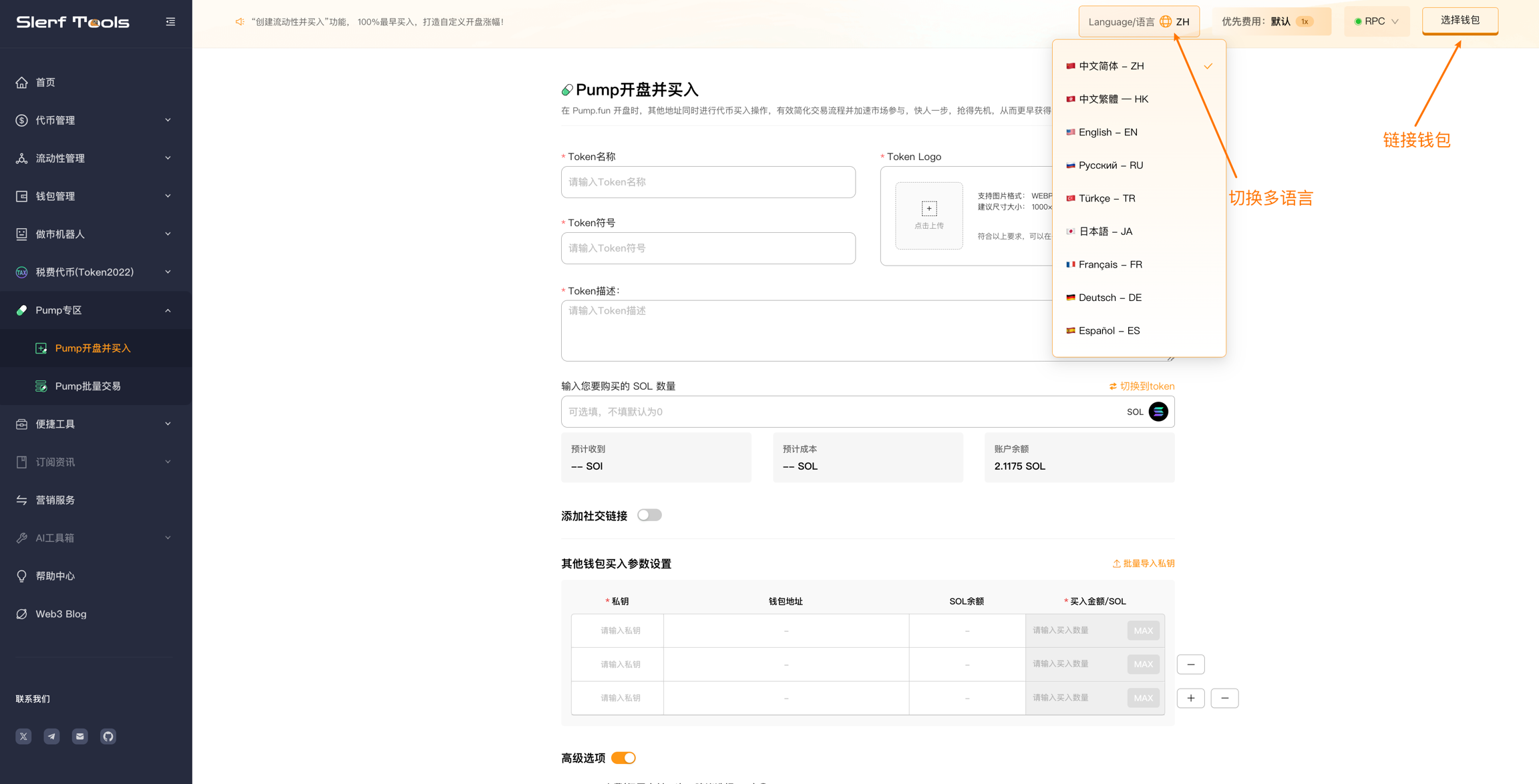 Запуск и покупка Pumphttps://slerf.tools/zh-cn/pump-launch-and-buy-token/solanaarrow-up-right
