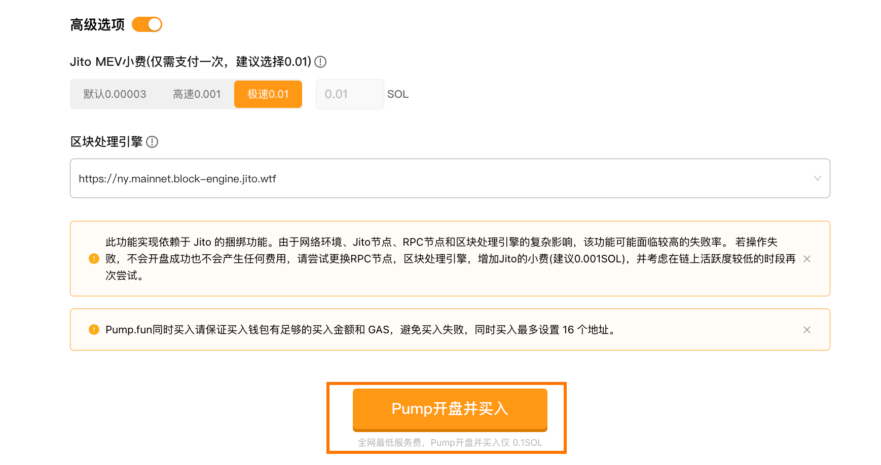 3. Минимум 0.1 SOL в кошельке (официальный сбор Pump 0.02 SOL)