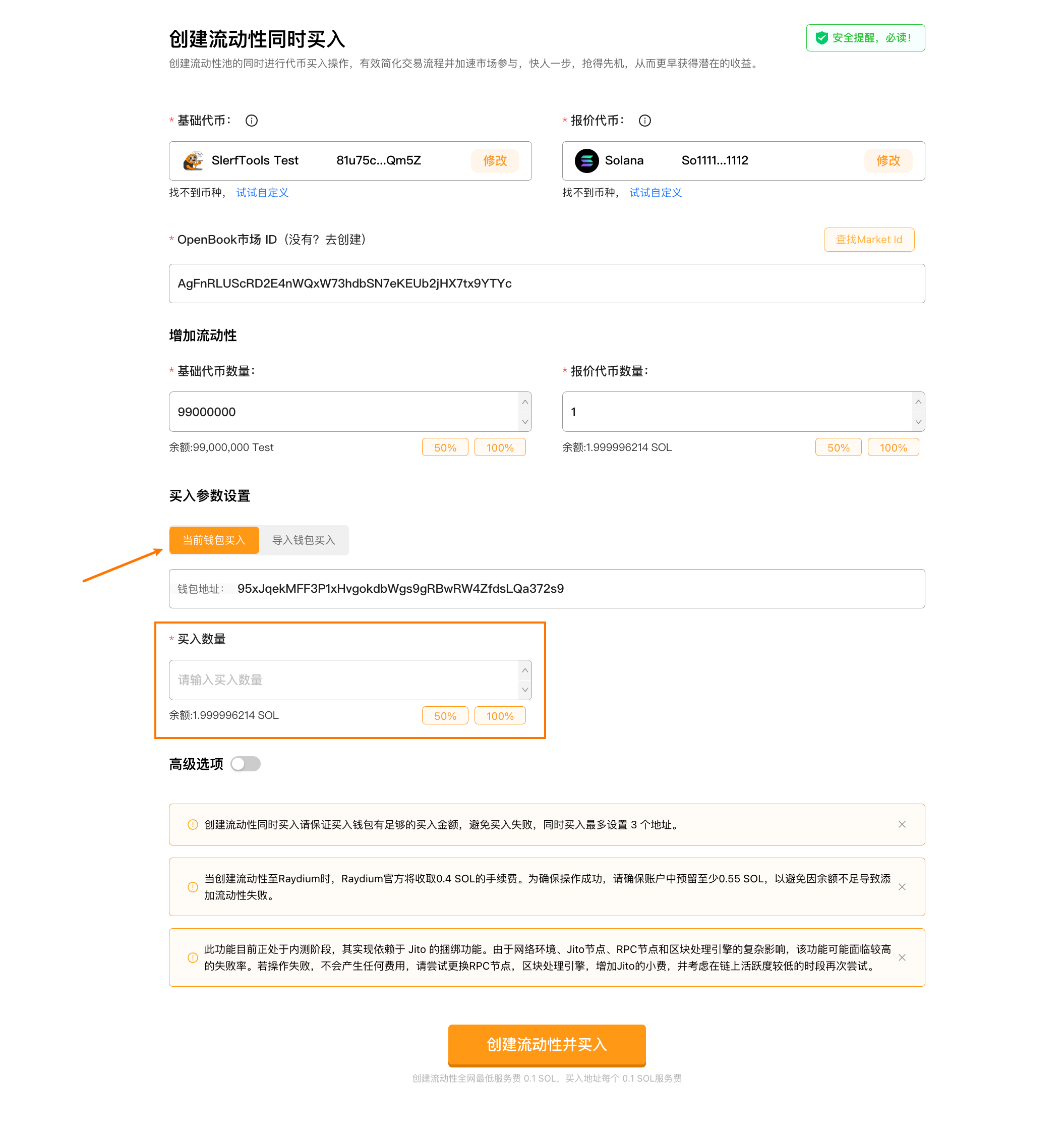 3️Создание пула ликвидности на Solana и покупка токенов одновременно