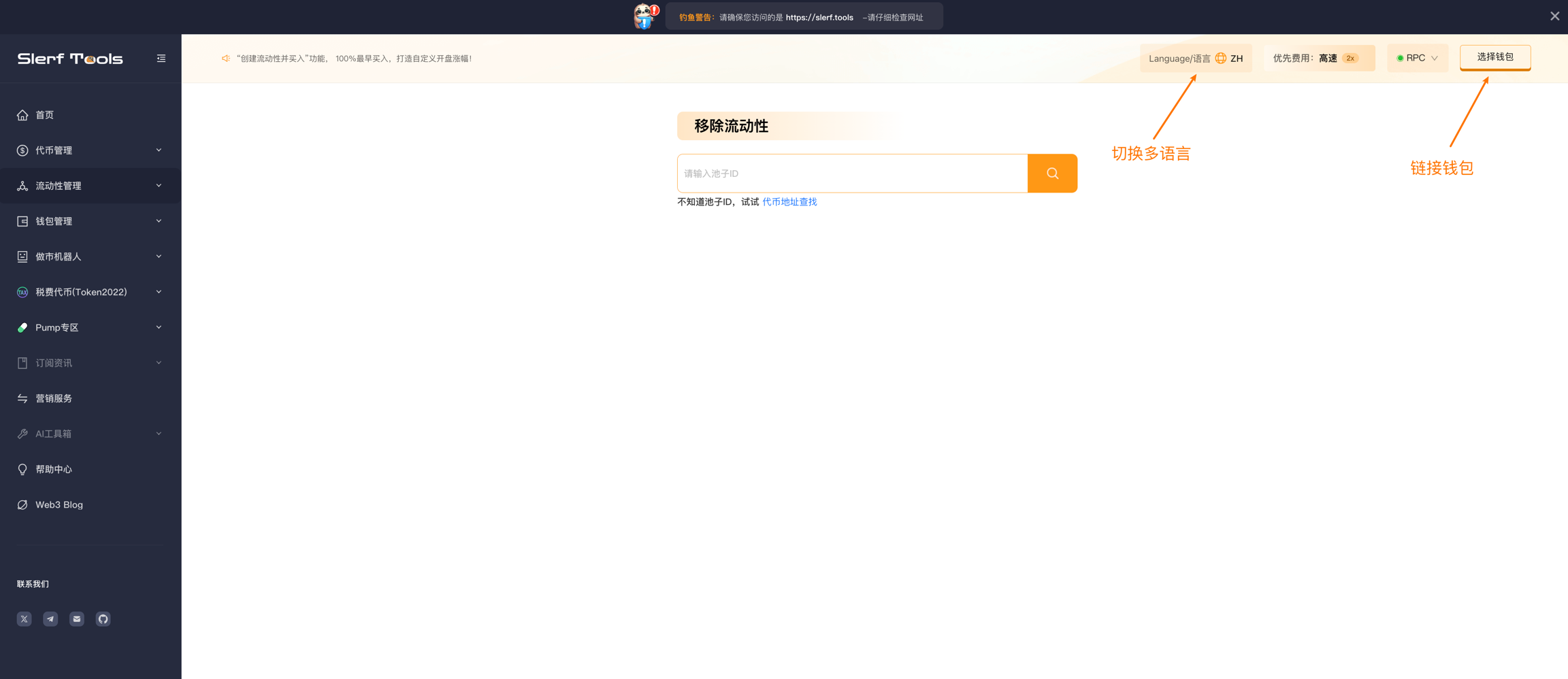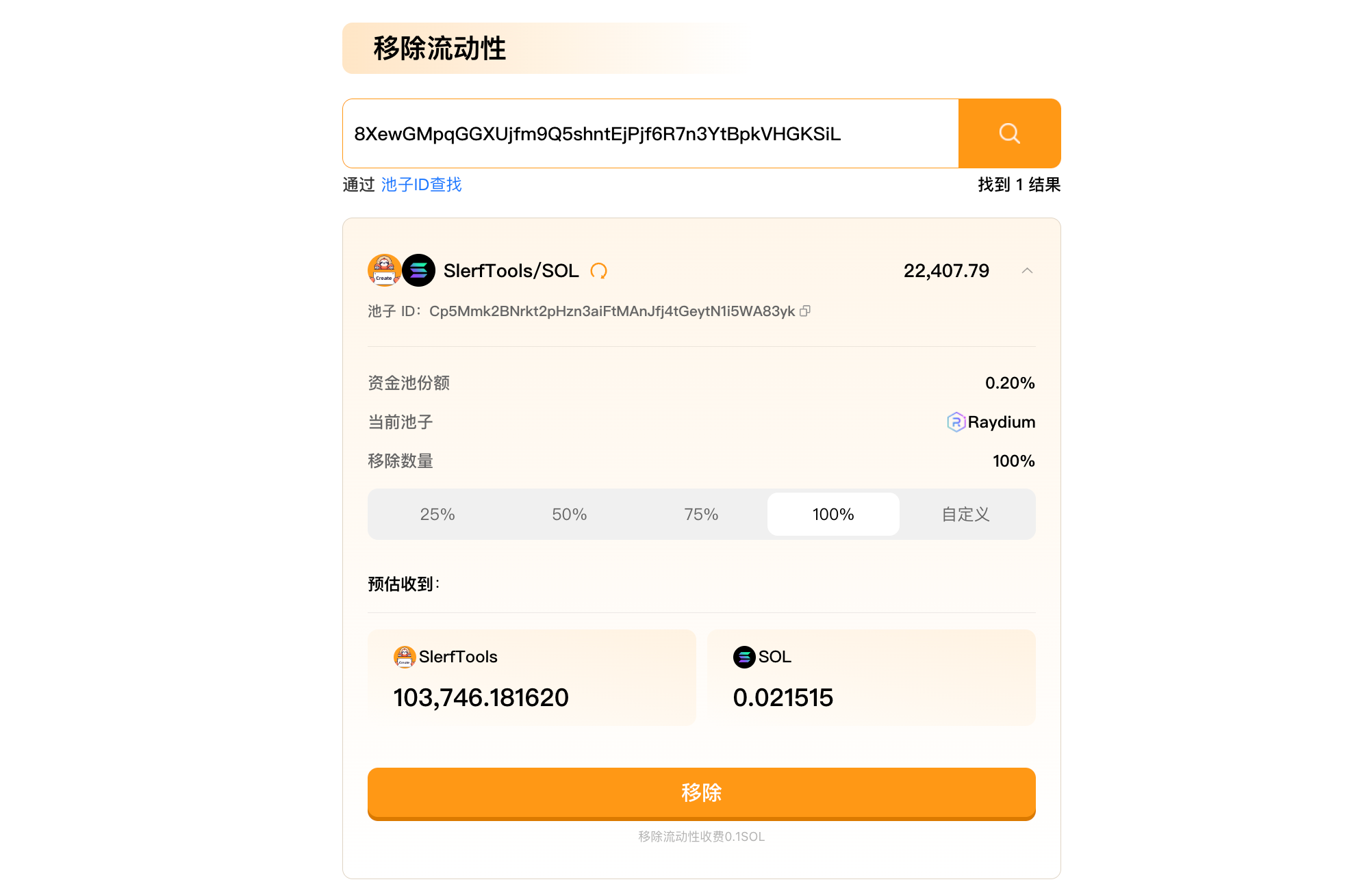 Быстро удалите ликвидность на Raydium, упростив процесс, немедленно настройте свою стратегию ликвидности, SlerfTools улучшит эффективность управления ликвидностью ваших активов.