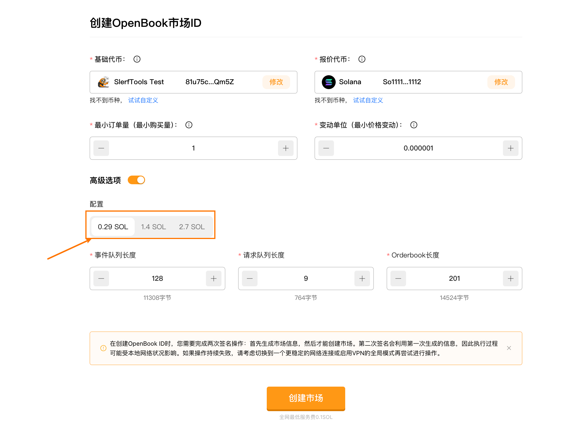 Создание OpenBook Market по цене в 5 раз ниже обычной - это здорово. Однако следует учитывать риски: если ваш проект долгосрочный и с большим объемом торгов, не стоит экономить 3 SOL. Если вы создаете краткосрочный проект с рыночной капитализацией менее 1 миллиона долларов или используете его для тестирования, то низкозатратный вариант вполне подойдет.