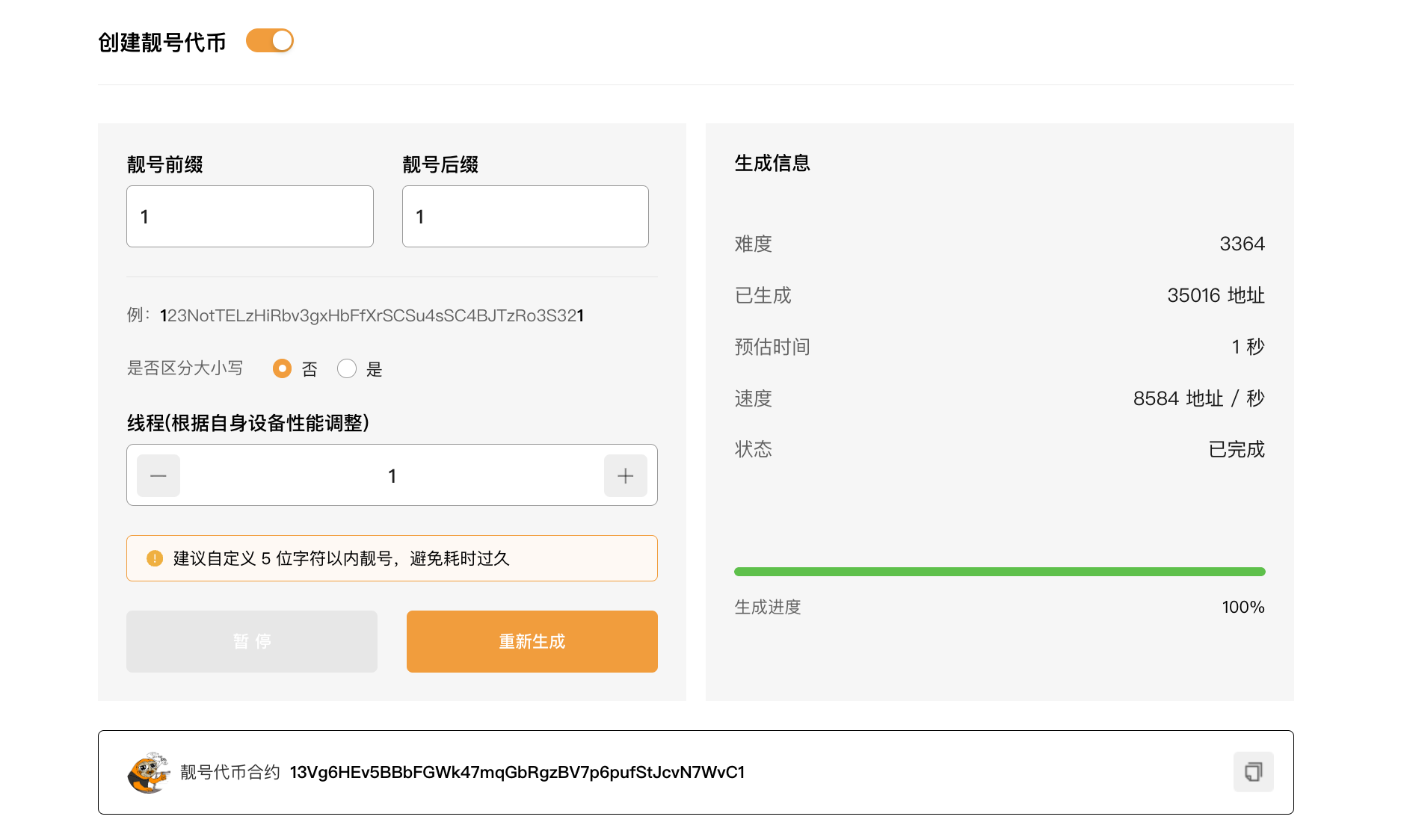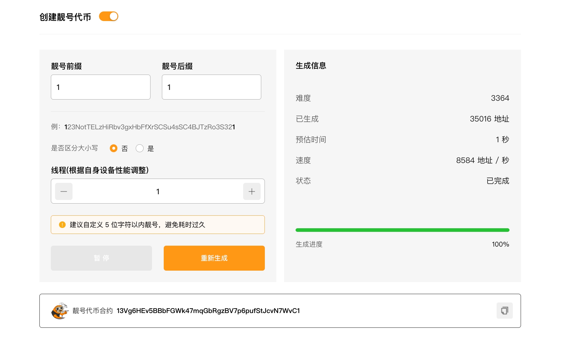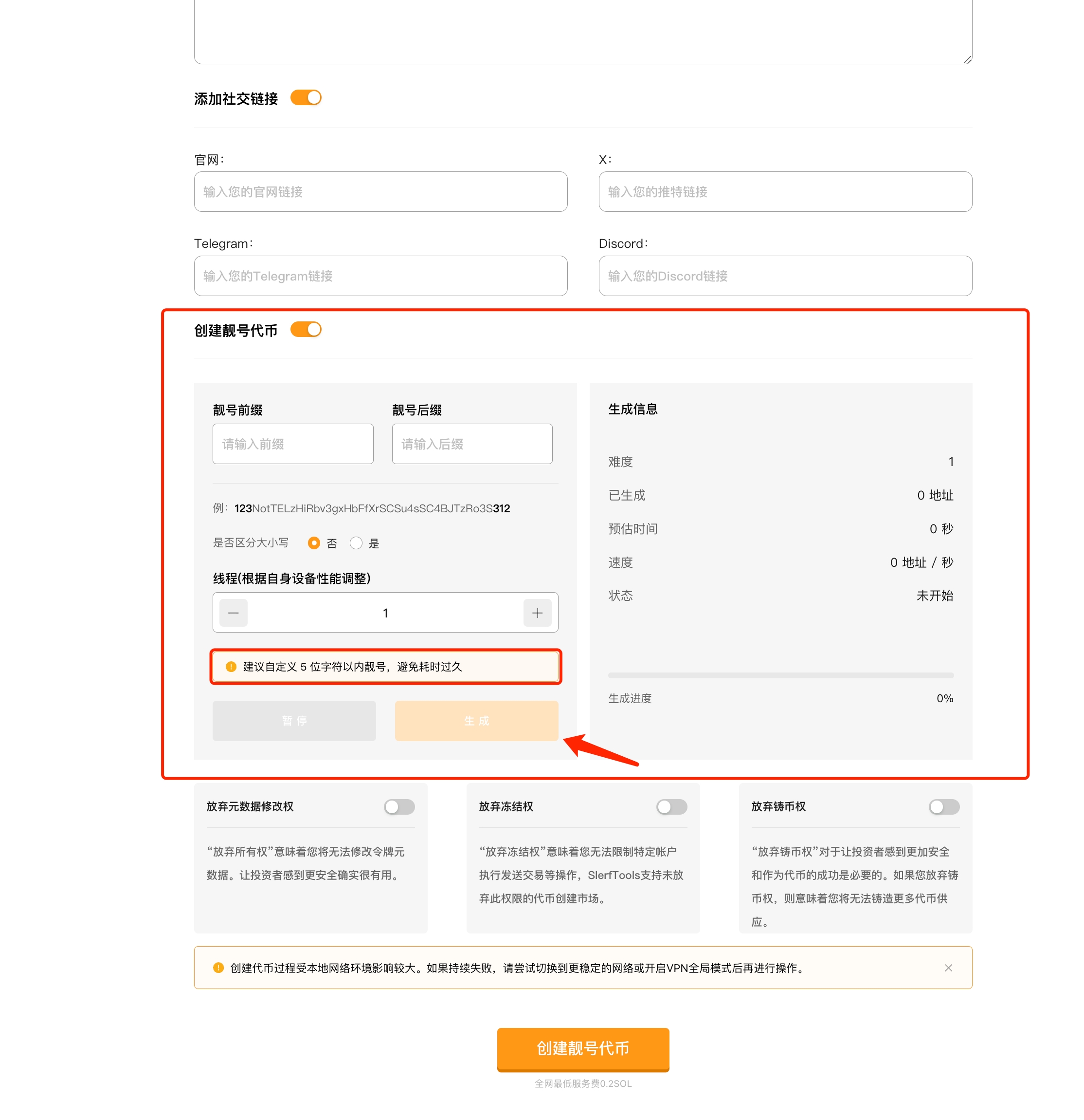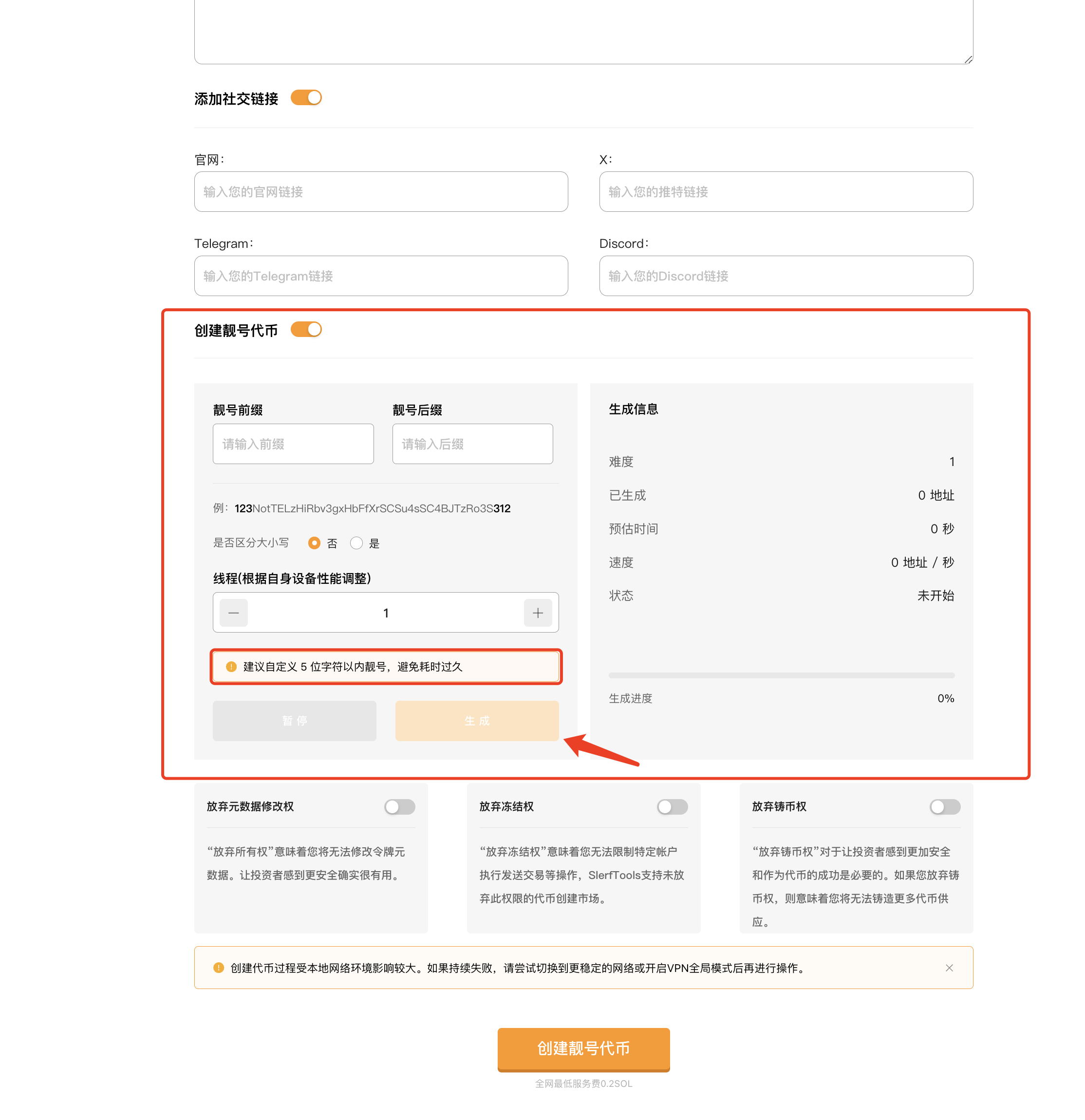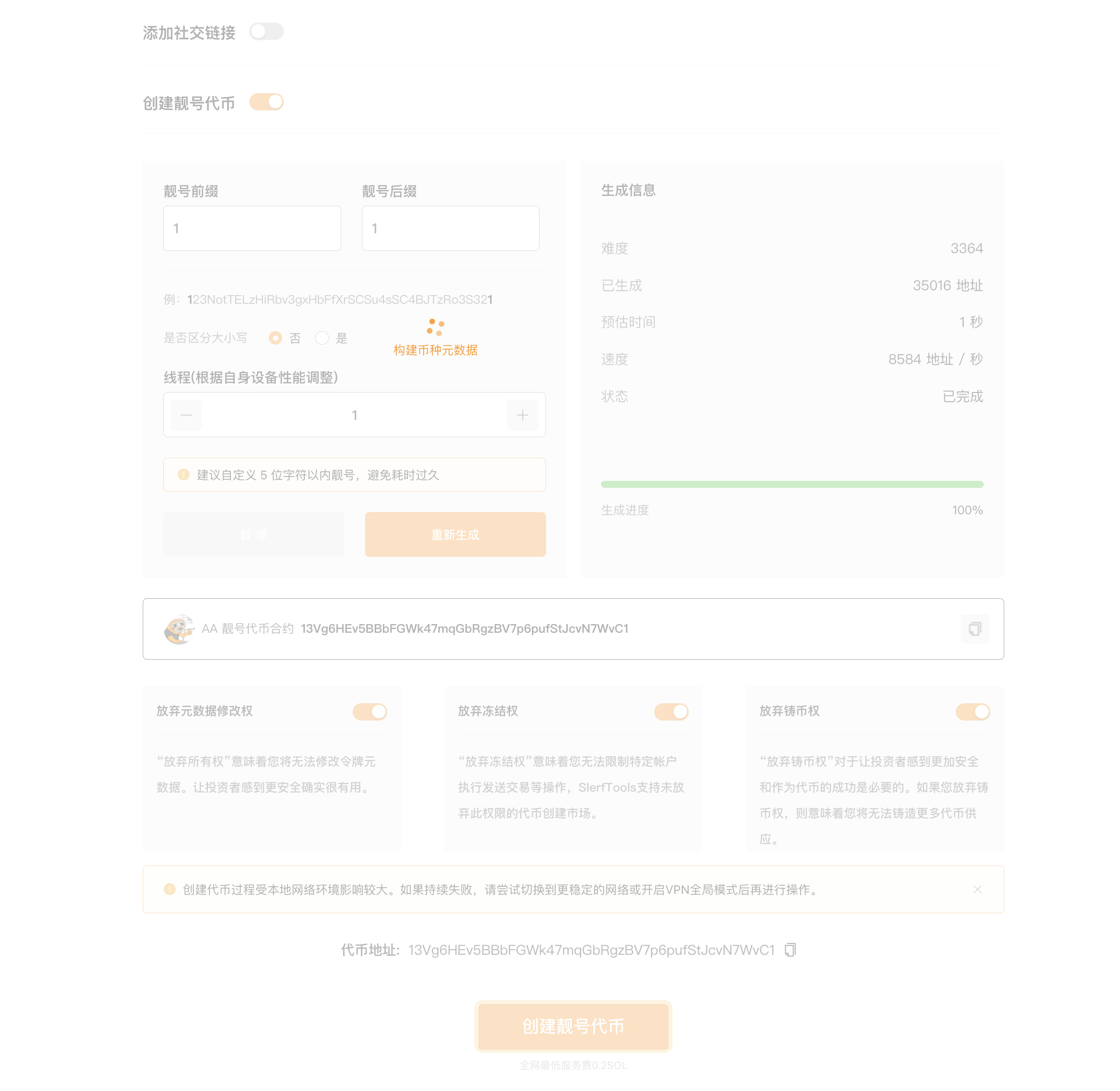 Настройте пользовательские префиксы и суффиксы для вашего токена Solana, чтобы создать уникальный адрес контракта для вашего токена.